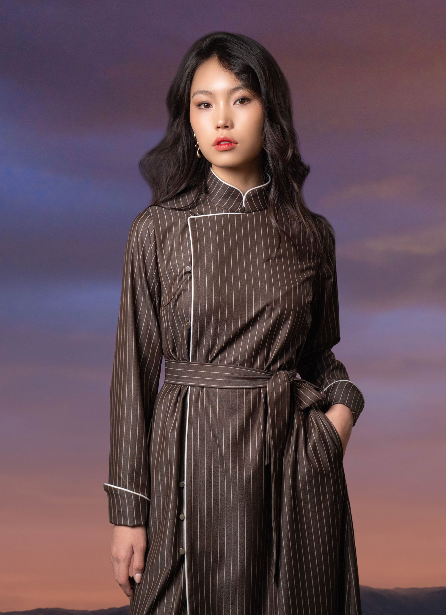 Ажил хэрэгч дээлэн даашинз Моделийн өндөр 175см, жин 56кг, цээжний тойрог 84см, размер S