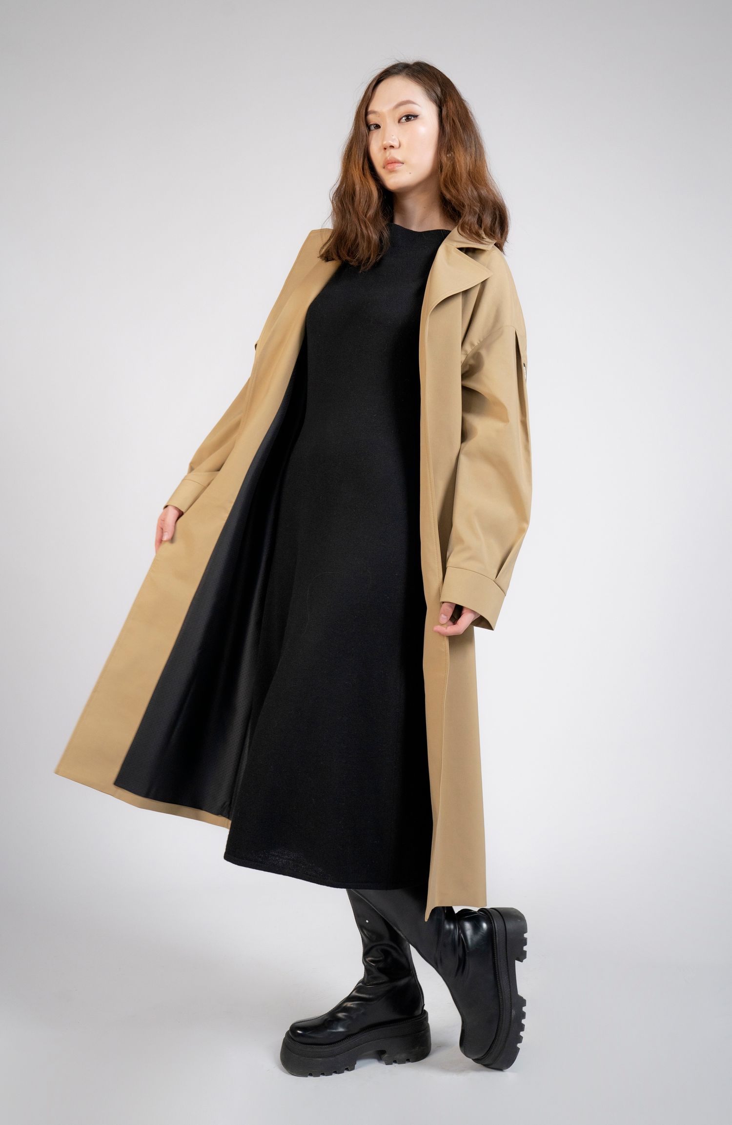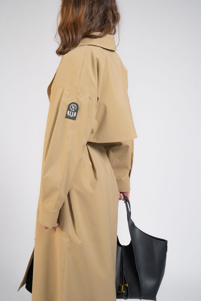 Товчгүй трэнч цув. Биед эвтэйхэн сул өмснөлтэй.