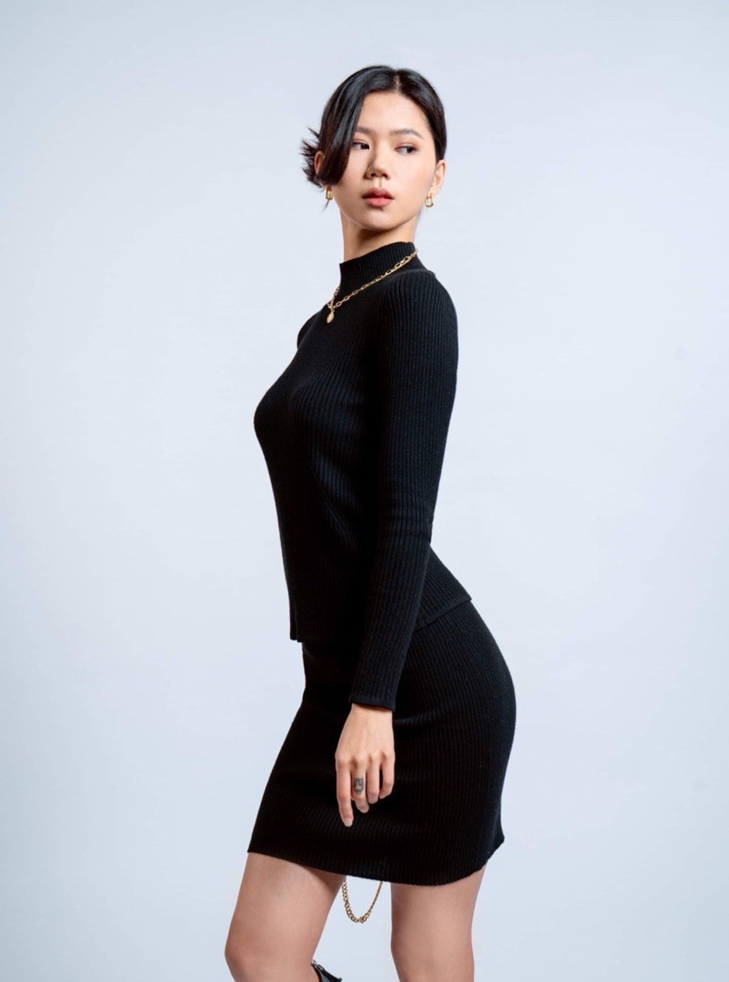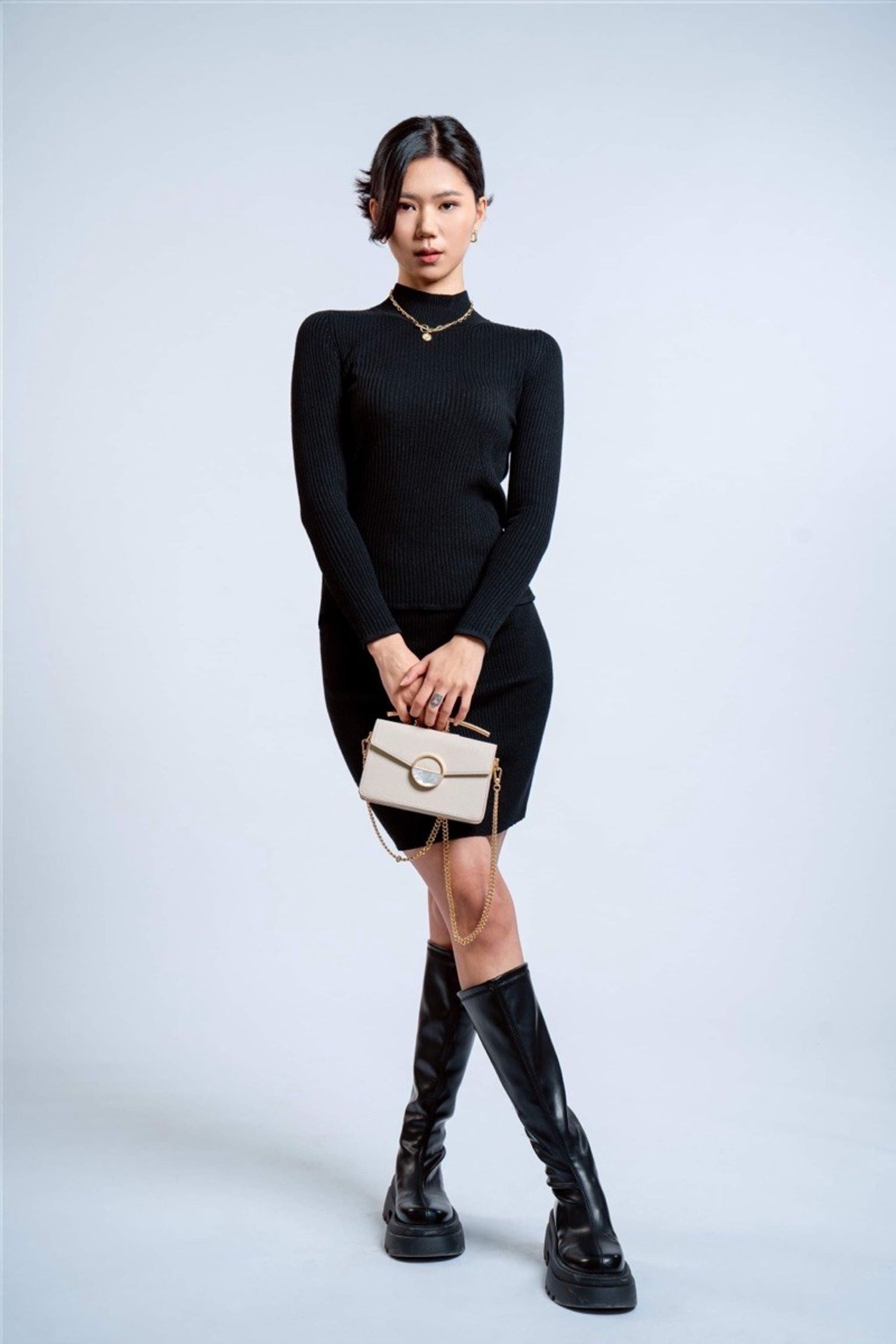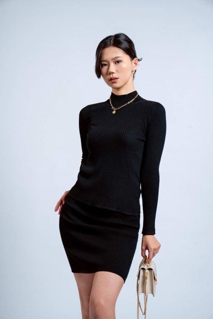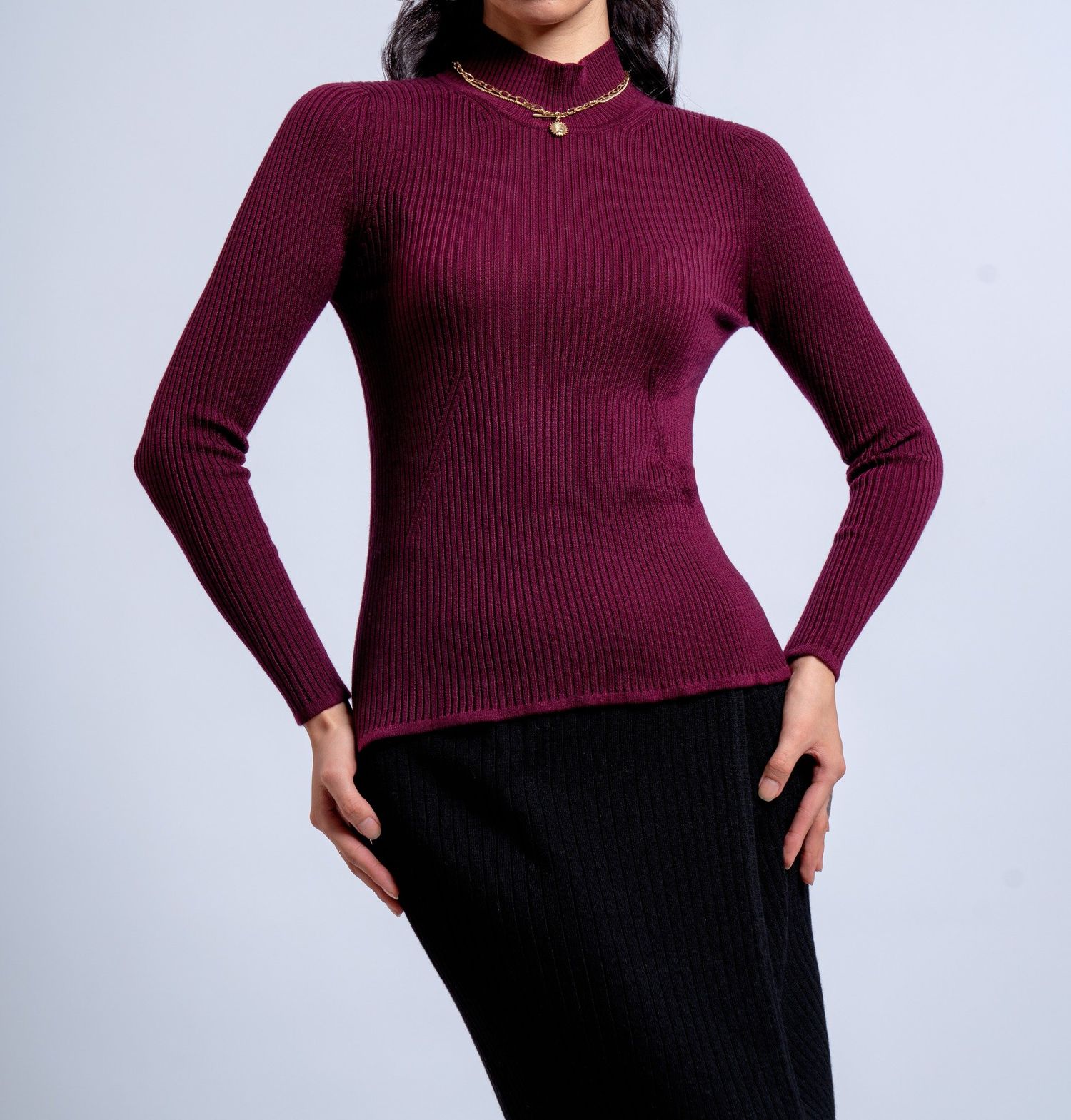 Сүлжмэл ноосон бариу хагас босоо захтай цамц.